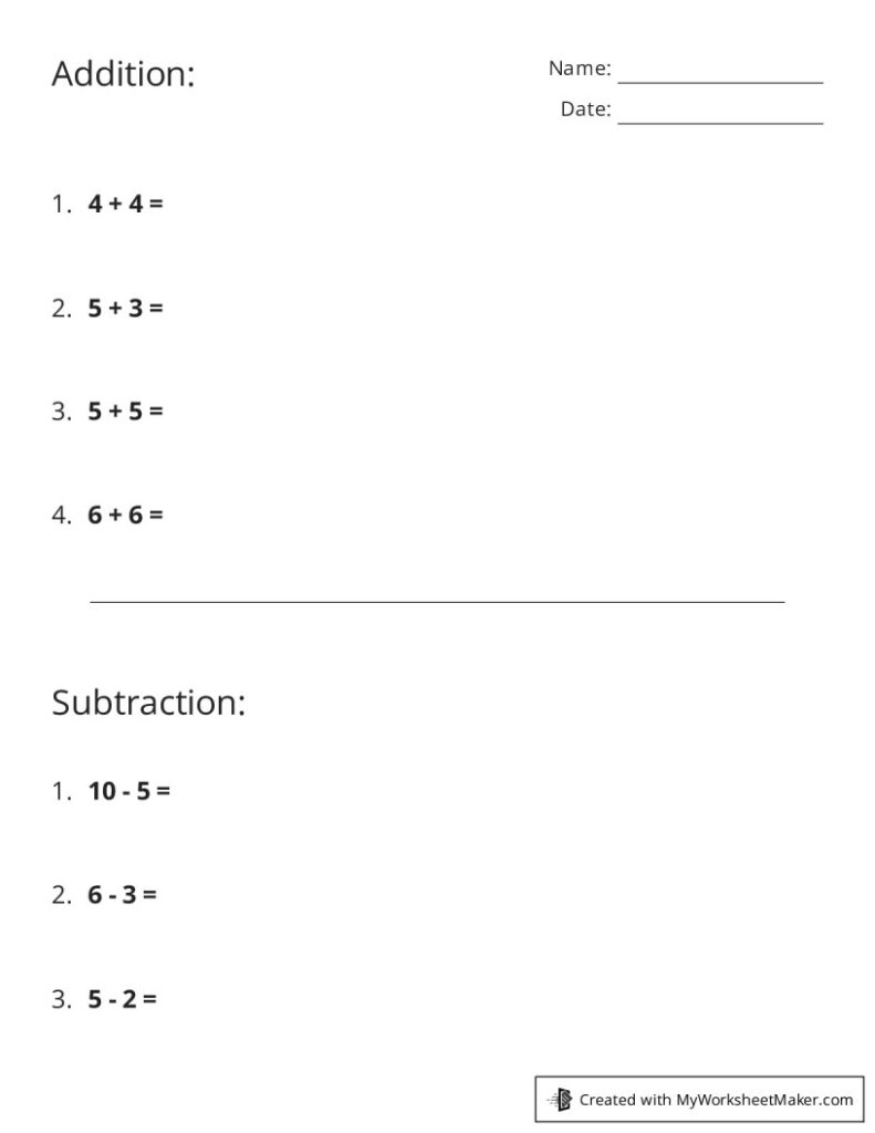 Free Addition and Subtraction Worksheets for Practice | Math Printables