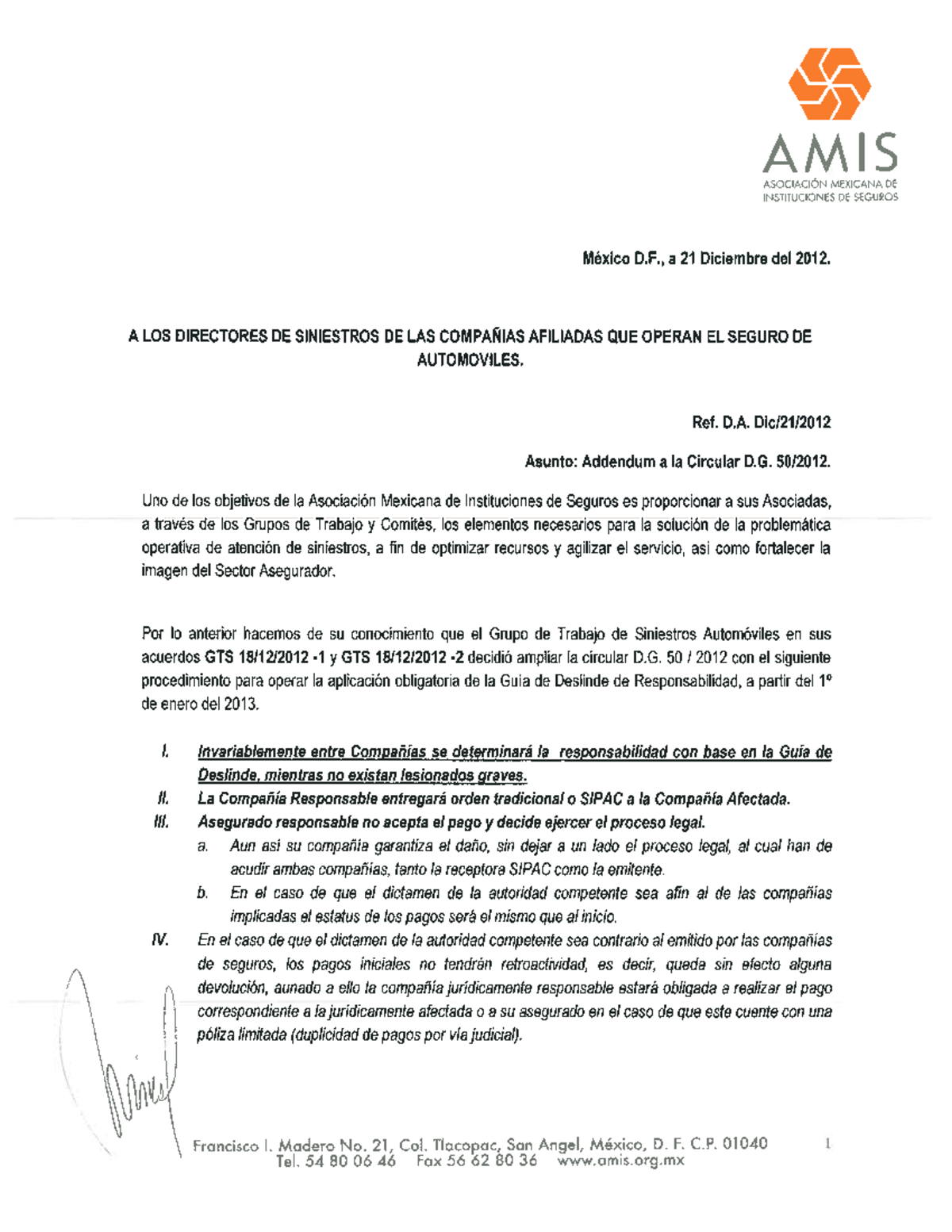 Addendum Circular DG 50 2012 sipac - Legislación en Seguro Privado y ...