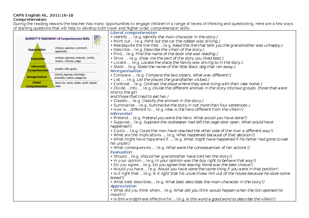 Addendum D Questening levels CAPS English HL-1 - CAPS English HL, 2011: ...