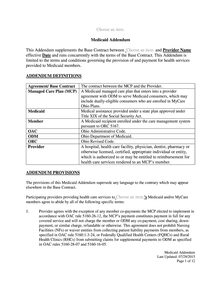 Addendum to a Contract - Fill Out, Sign Online and Download PDF ...