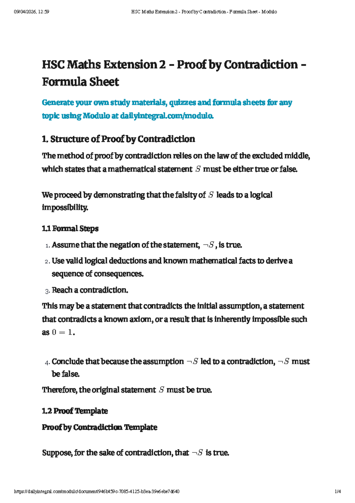 HSC Maths Extension 2 Proof by Contradiction Formula Sheet - Studocu