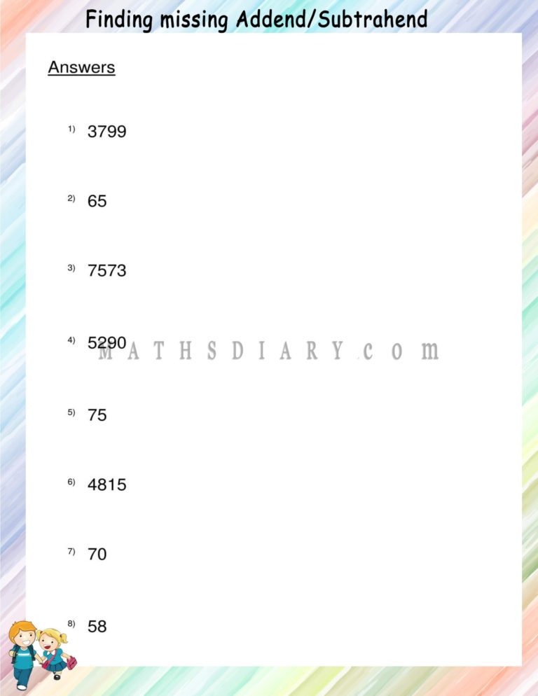 Calculate Addends - Middle School Math Worksheets - Fill in the Addend ...