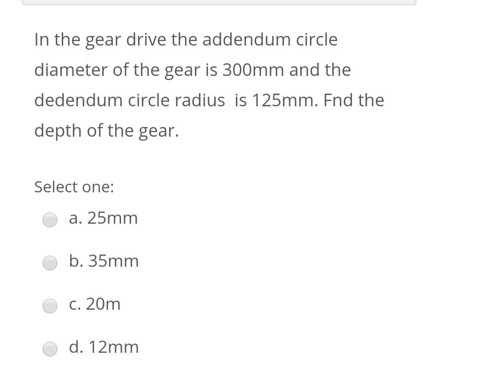Solved In the gear drive the addendum circle diameter of the | Chegg.com