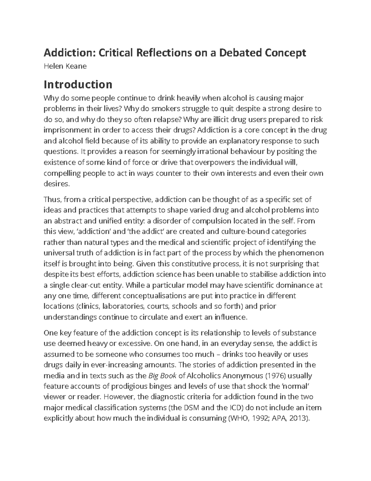 Chapter 21 SAGE Handbook - Addiction: Critical Reflections on a Debated ...