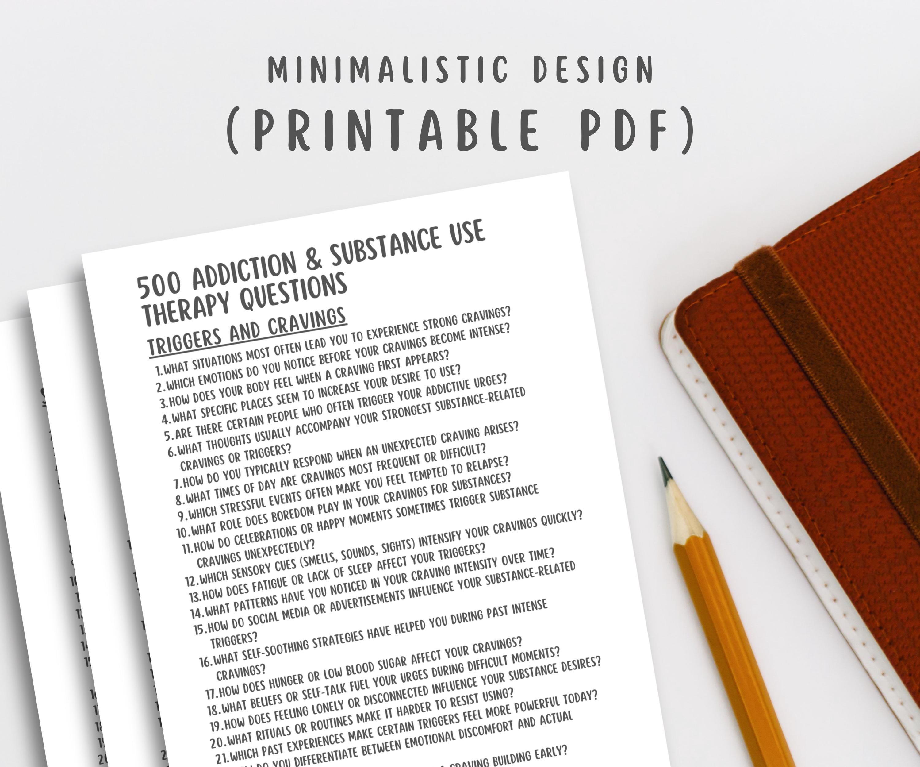 Addiction Recovery Therapy Questions Therapy Tools Printable PDF Word ...