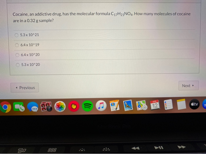 Solved Cocaine, an addictive drug, has the molecular formula | Chegg.com