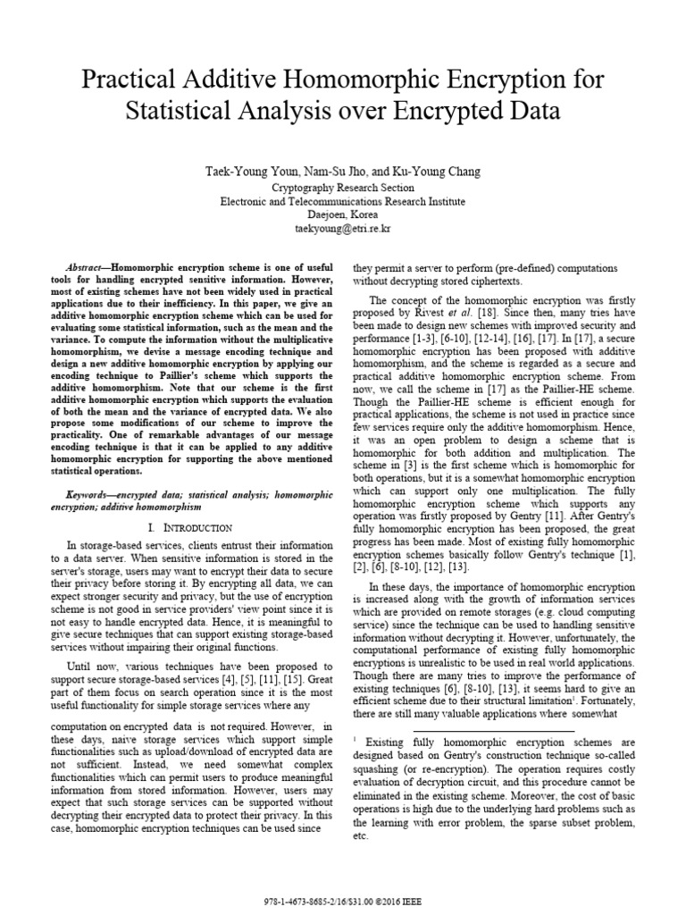 Additive Homomorphic Encryption for Statistics | PDF | Encryption ...