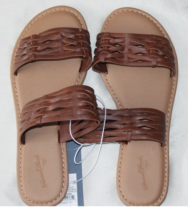 Universal Thread Women's Size 7 Addie Two Band Slide Sandals Brown | eBay