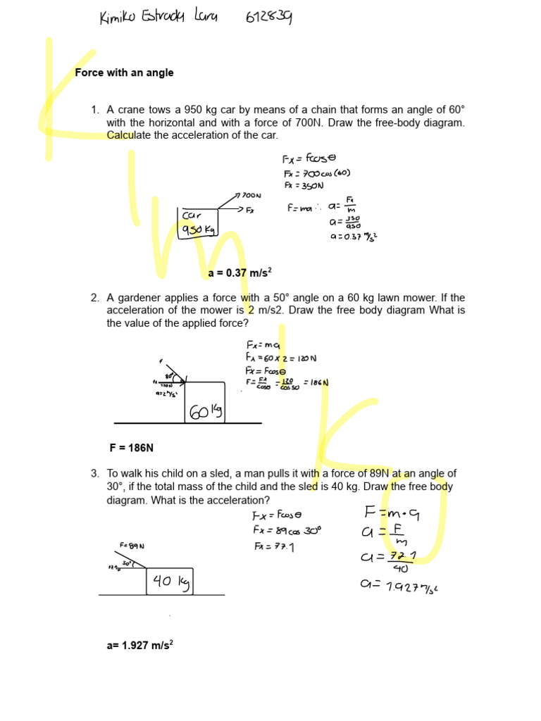 Forces at Angles Solutions - FN 1 Analysis and Calculations - Studocu