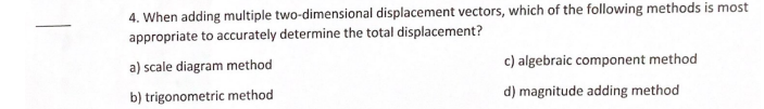 Solved 4. When adding multiple two-dimensional displacement | Chegg.com