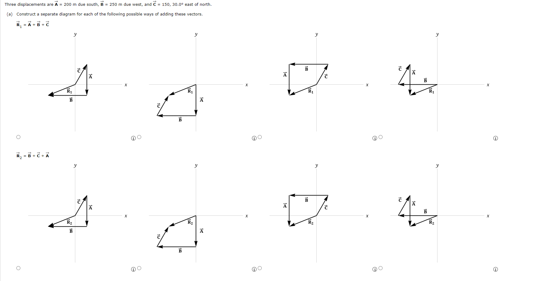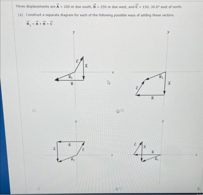 Solved Three displacements are A=200 m due south, B=250 m | Chegg.com