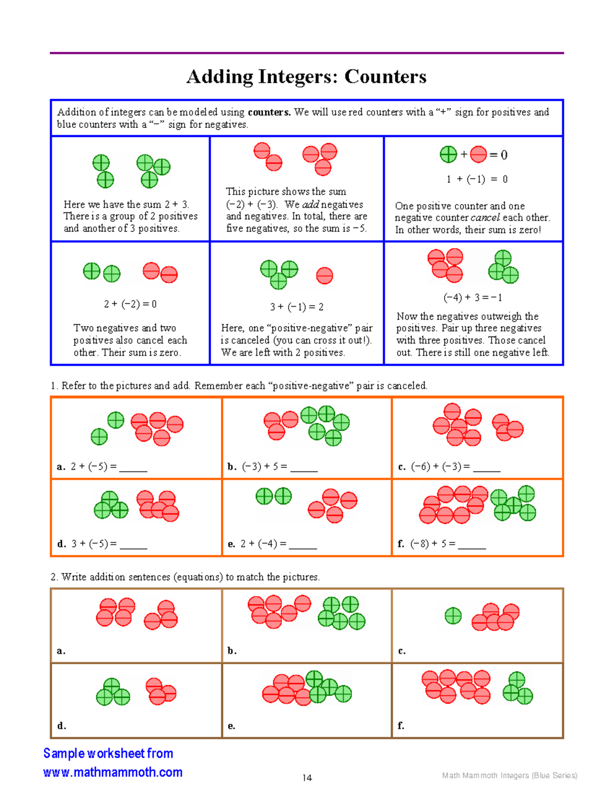 Adding Integer Worksheet Adding Integers Worksheets Graphic By