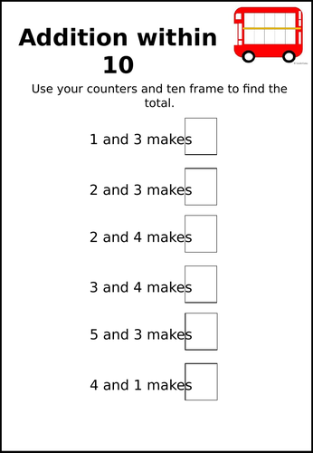Addition within 10 Worksheet - (teacher made) - Twinkl - Worksheets Library