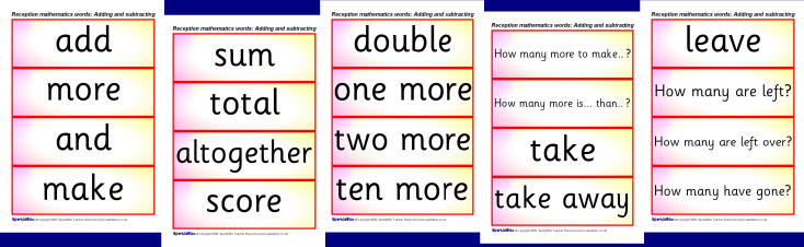 Reception maths vocabulary cards: adding and subtracting (SB2123 ...