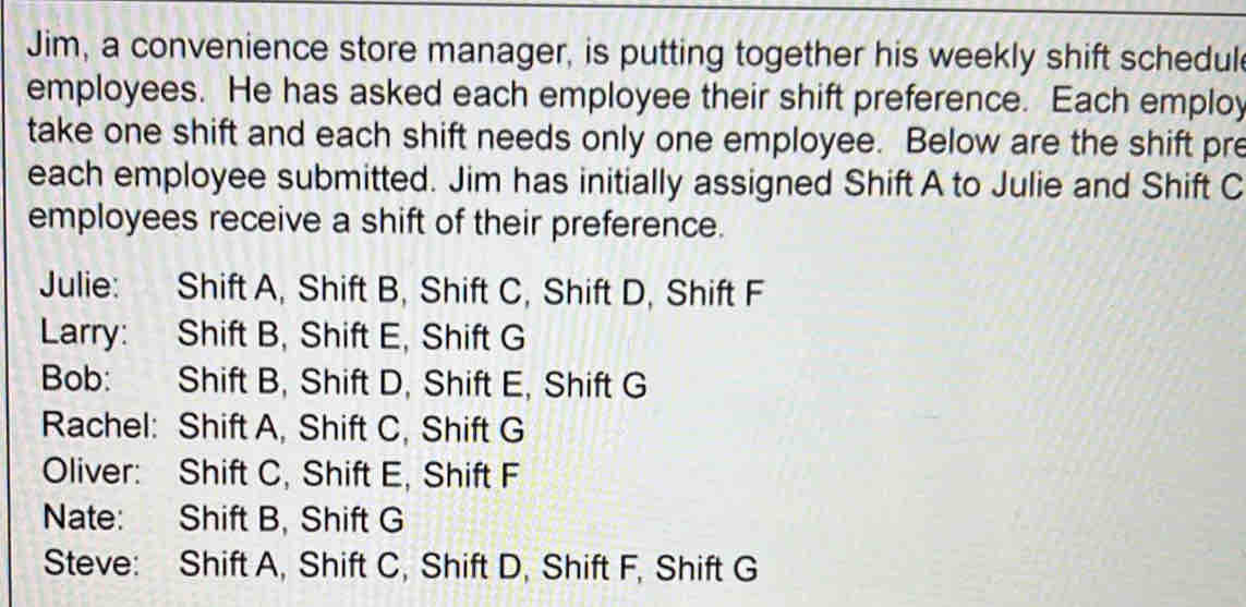 Jim, a convenience store manager, is putting together his weekly shift ...