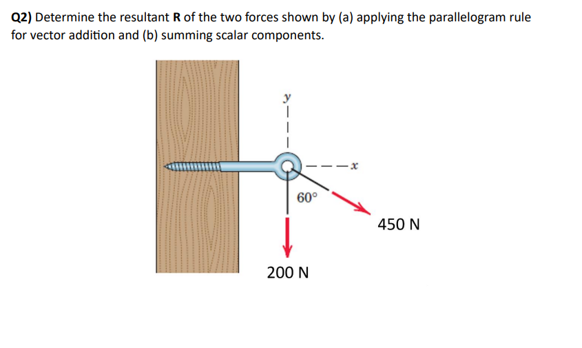 Solved Q2) Determine the resultant R of the two forces shown | Chegg.com