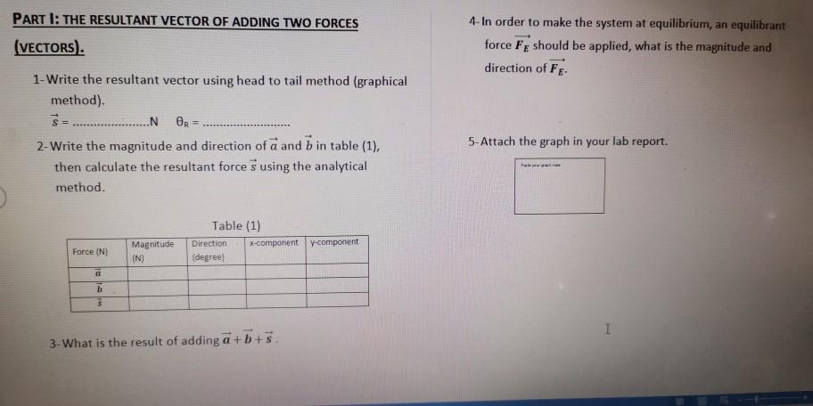 PART 1: THE RESULTANT VECTOR OF ADDING TWO FORCES | Chegg.com
