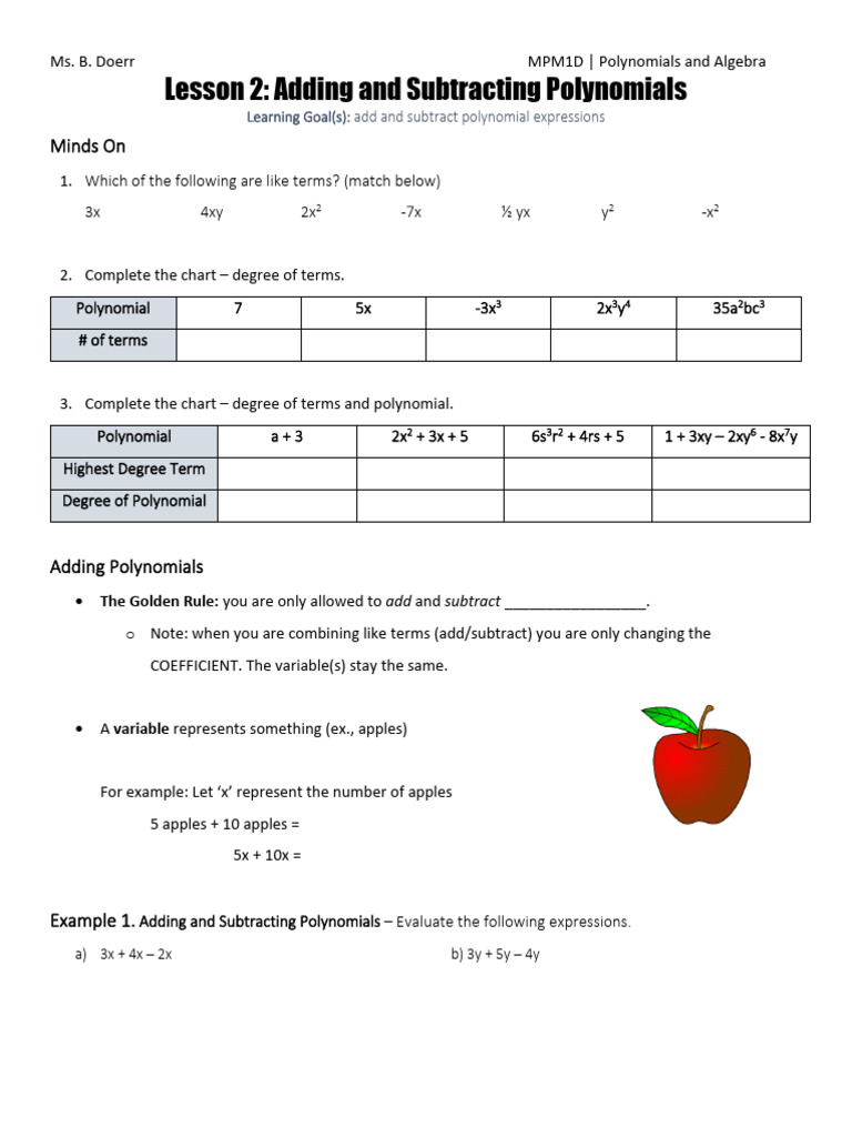 Adding and Subtracting Polynomials - KATE'S MATH LESSONS