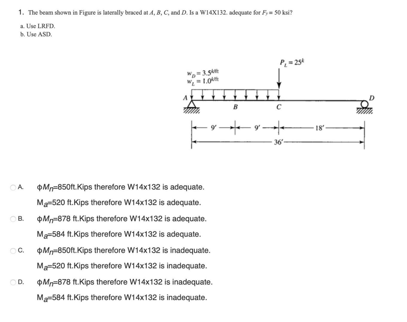 Solved 1. The beam shown in Figure is laterally braced at | Chegg.com