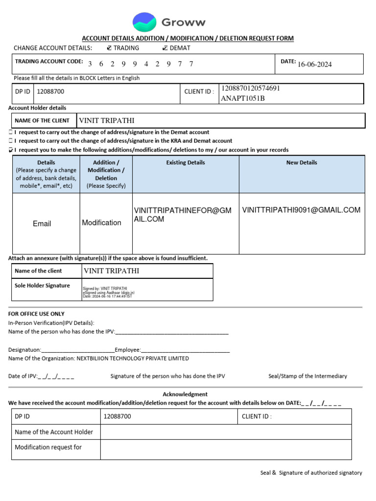 Account Details Addition / Modification Request Form (Trading & DP A/c ...