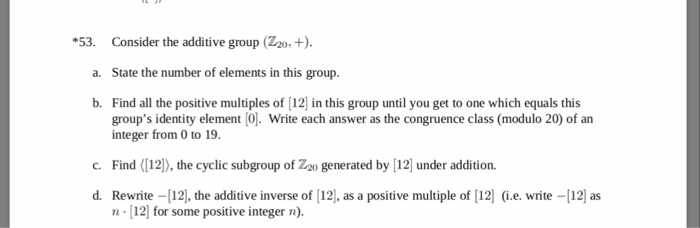Solved 53. Consider the additive group (Z20 a. State the | Chegg.com