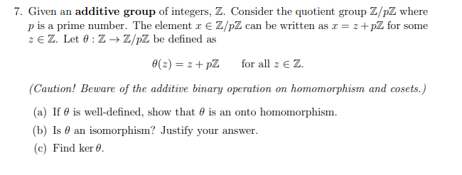 Solved 7. Given an additive group of integers, Z. Consider | Chegg.com