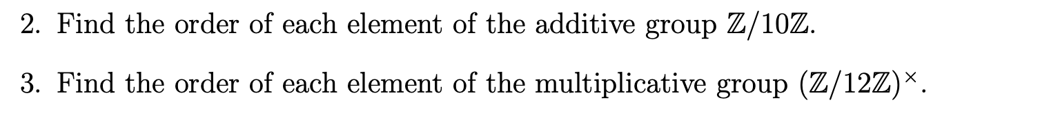 Solved 2. Find the order of all elements of: a) the additive | Chegg.com