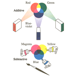 mixing lights (additive color theory) & mixing pigments (subtractive ...