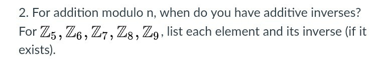 Solved 2. For addition modulo n, when do you have additive | Chegg.com