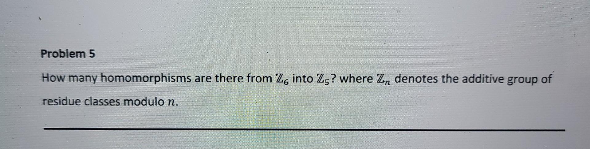 Solved Problem 5 How many homomorphisms are there from Z6 | Chegg.com