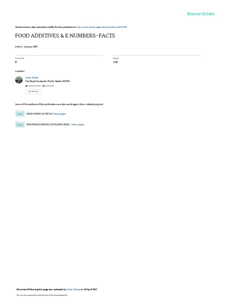 (PDF) FOOD ADDITIVES & E NUMBERS-FACTS
