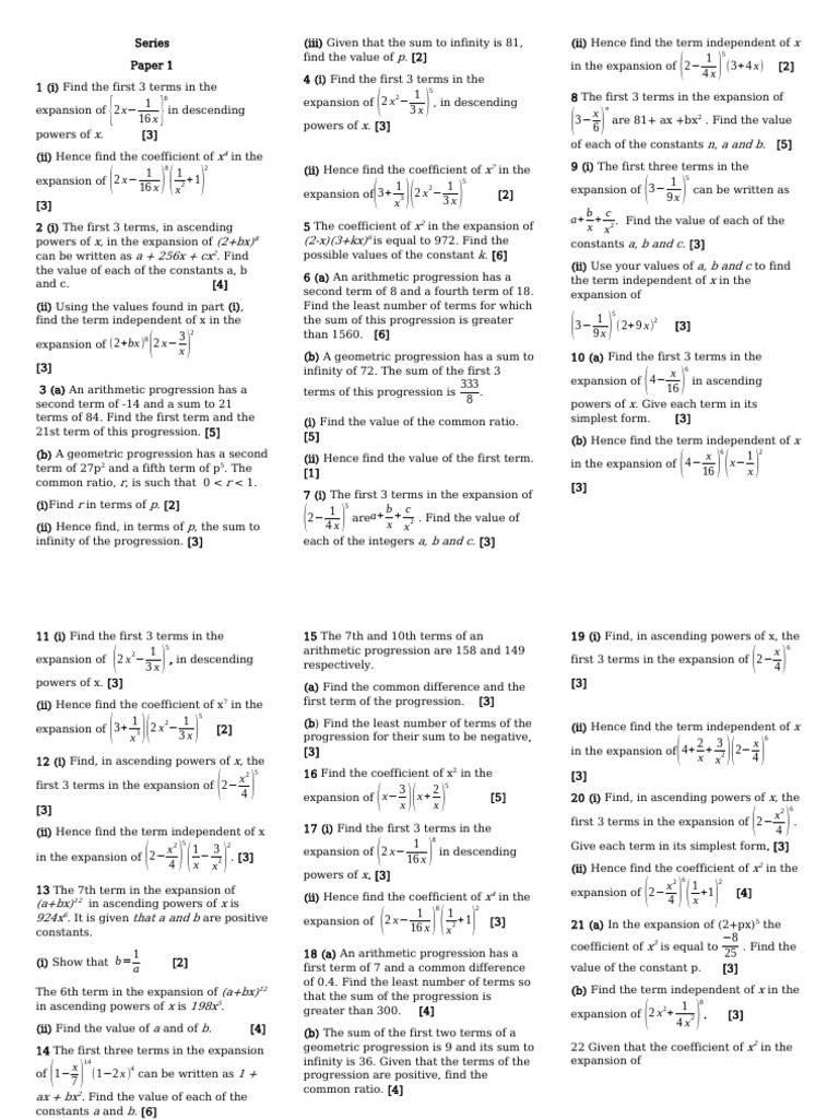 IGCSE Additional Math Questions Sorted by Topics | Teaching Resources