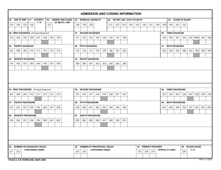 DA Form 2985. Admission and Coding Information | Forms - Docs - 2025