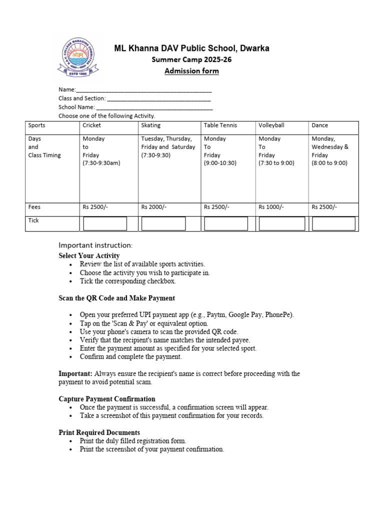 Admission Form Summer Camp 2025-26 | PDF | Qr Code | Payments