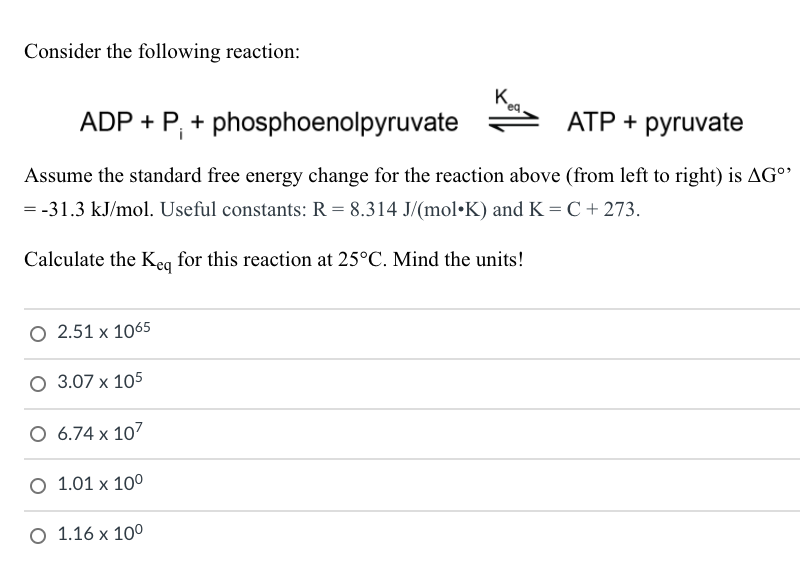 Solved Consider the following reaction: K ADP + P.: + | Chegg.com