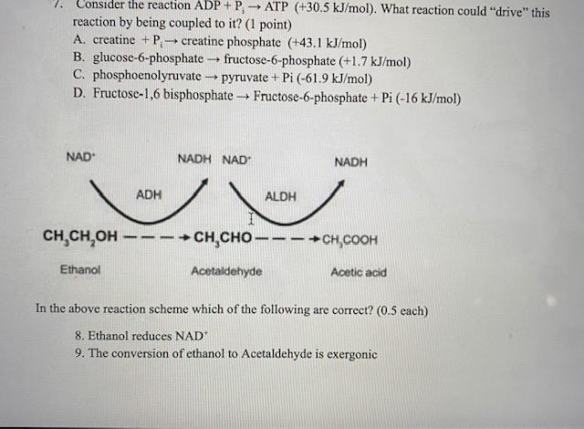 Solved 7. - Consider the reaction ADP + P ATP (+30.5 | Chegg.com