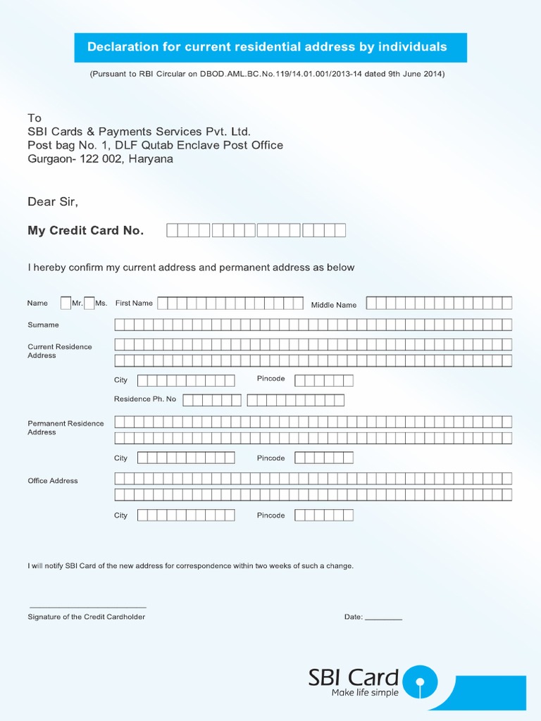 Self Declaration For Address Change | PDF