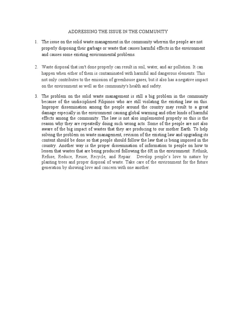 SOLUTION: Addressing environmental issues through community development ...