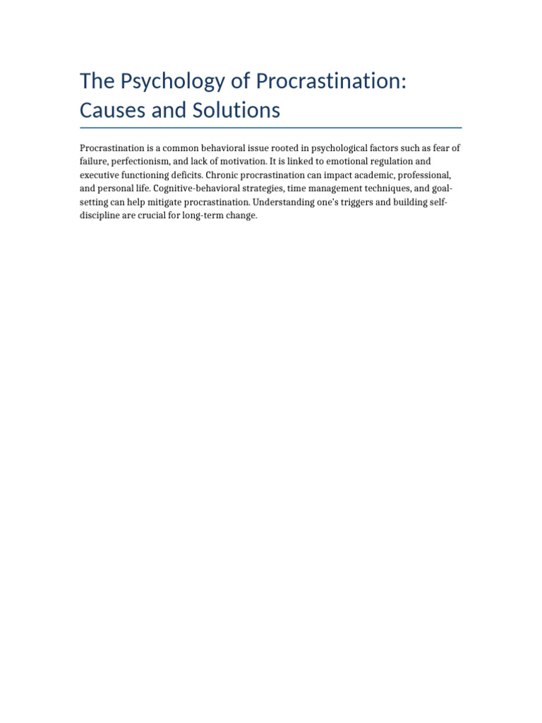 The Psychology of Procrastination Causes and Solutions | PDF
