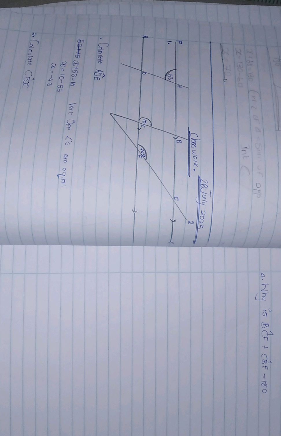 1. Calculate $ ADE$ $63 + x + 53 = 10$ $x | StudyX