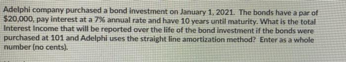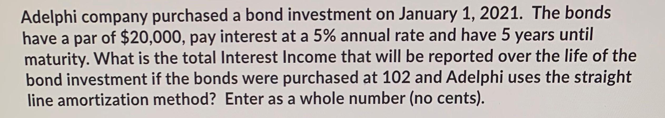 Solved Adelphi company purchased a bond investment on | Chegg.com