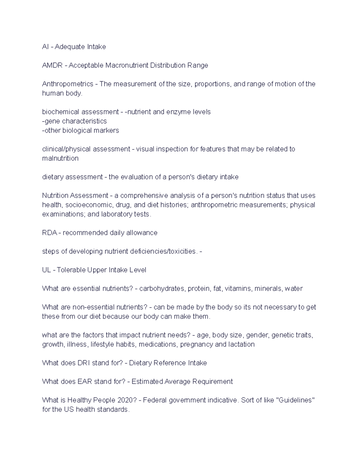 Chap 2 SG - Chapter 2 Study Guide - Adequate Intake (AI) the average ...