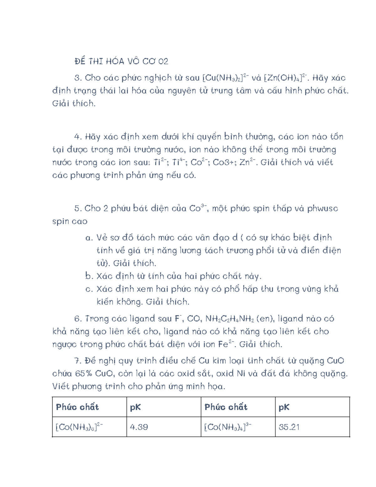 ĐỀ HÓA VÔ CƠ 2 - adfsDF - ĐỀ THI HÓA VÔ CƠ 02 Cho các phức nghịch từ ...