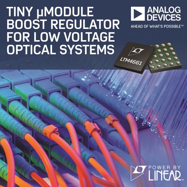 ADI發表用於低電壓光學系統的精巧 µModule 升壓型穩壓器