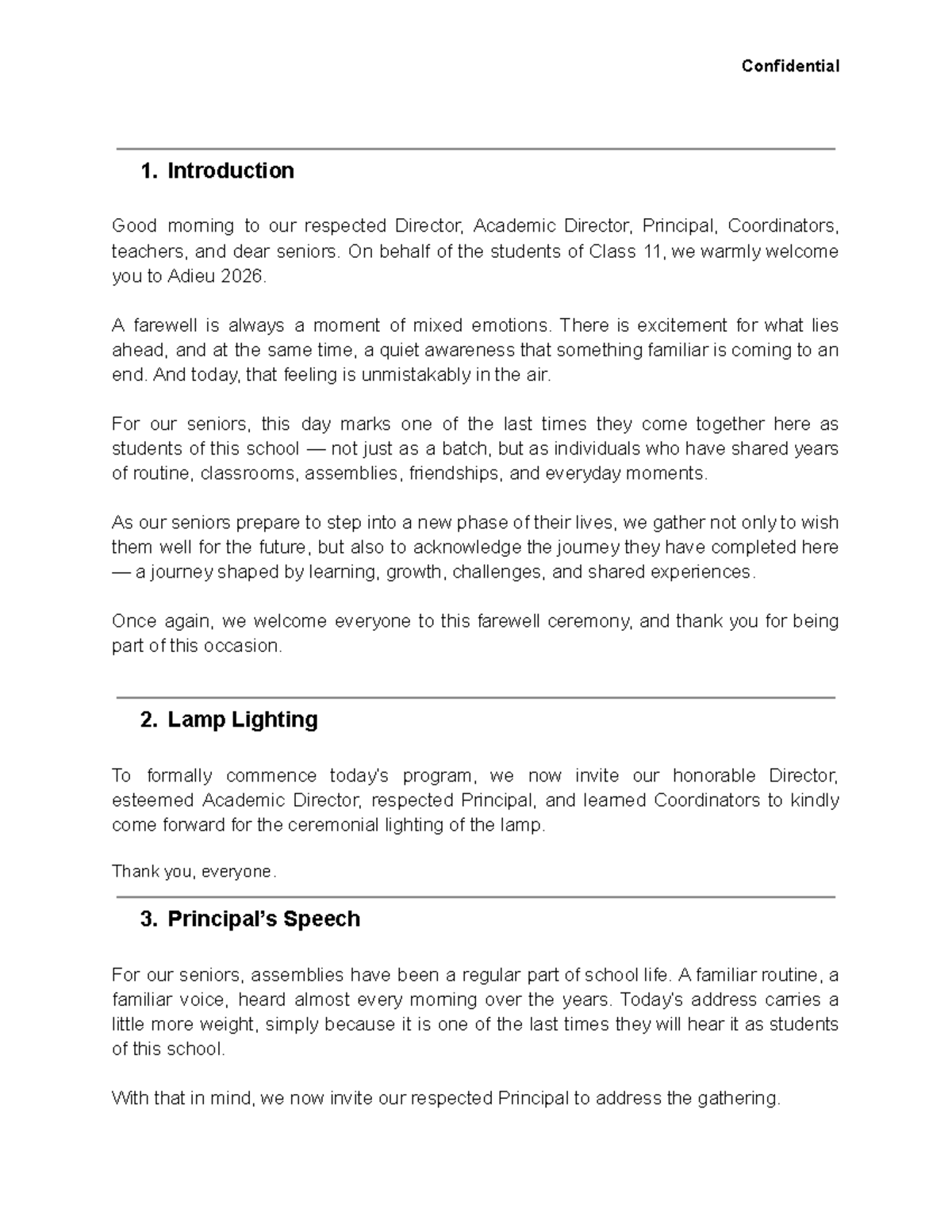 Farewell Ceremony Anchoring Script for Class 11 - Adieu 2026 - Studocu