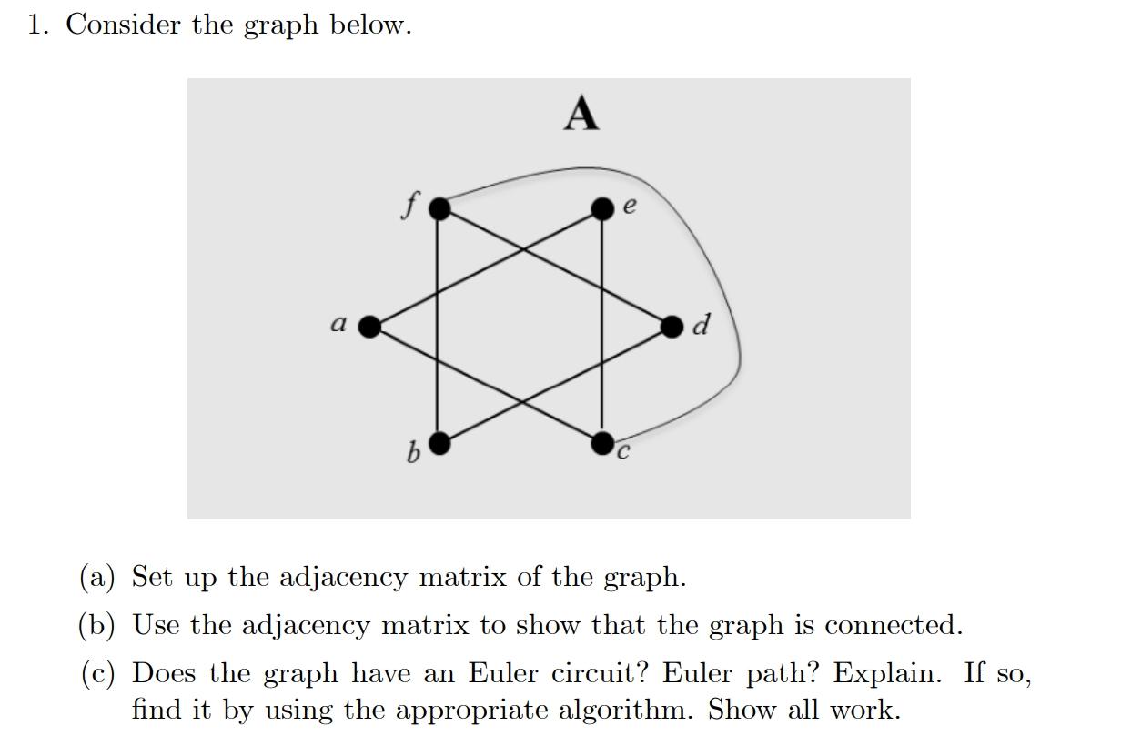 Consider the graph below. 1. (a) Set up the adjacency matrix of the ...