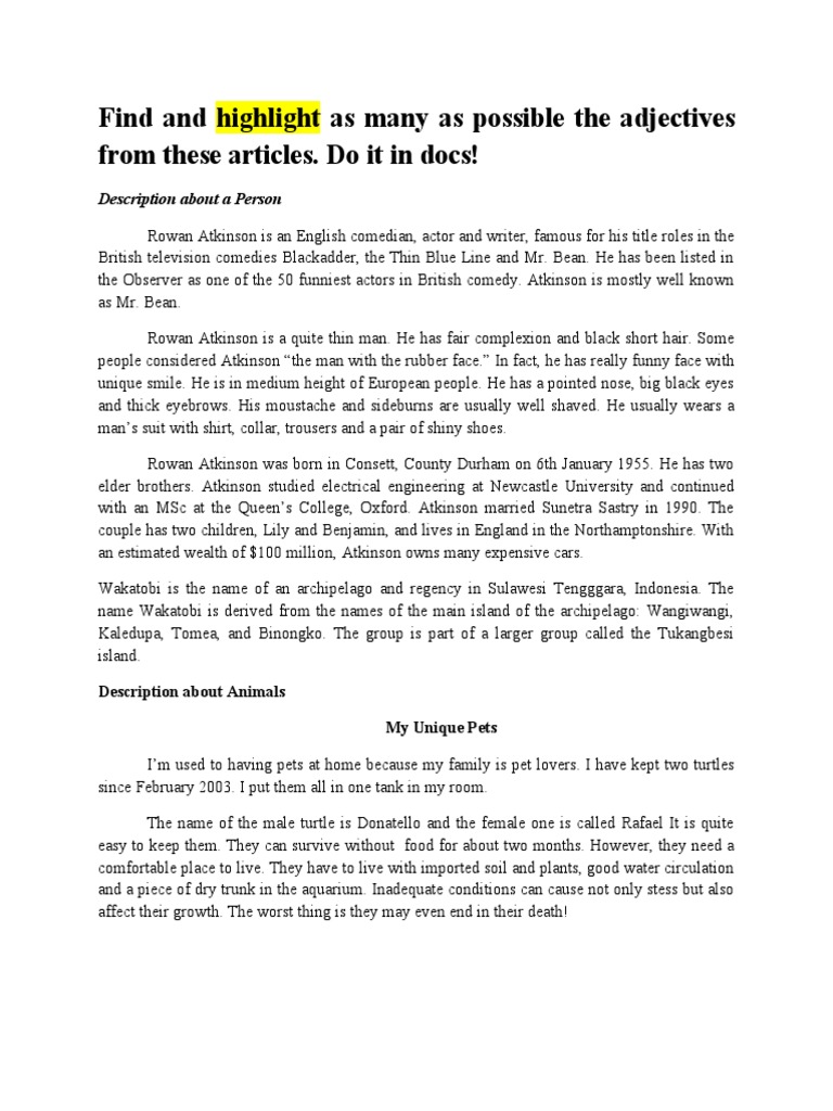 Descriptive Text Find The Adjectives | PDF | Home & Garden
