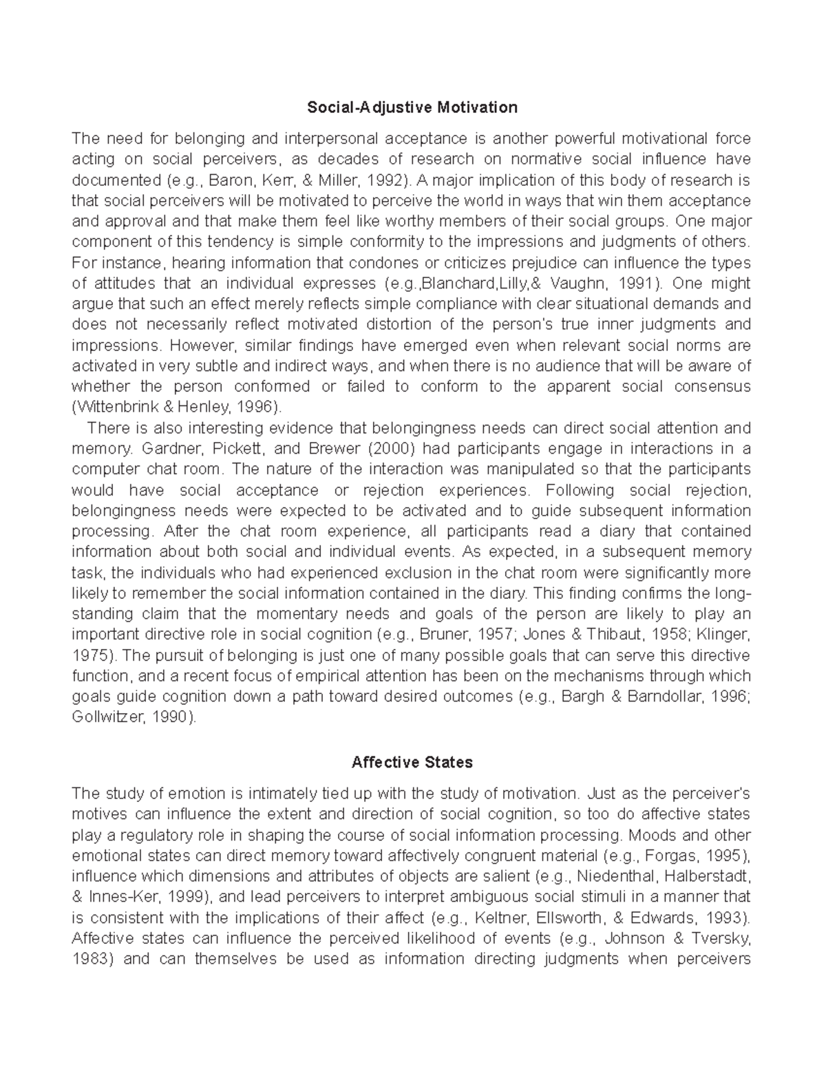 Social-Adjustive Motivation - , Baron, Kerr, & Miller, 1992). A major ...