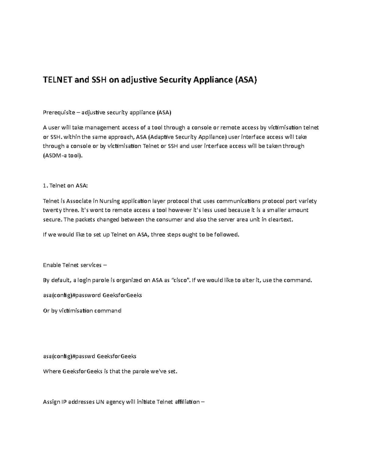 Telnet and SSH on adjustive Security Appliance (ASA) - TELNET and SSH ...