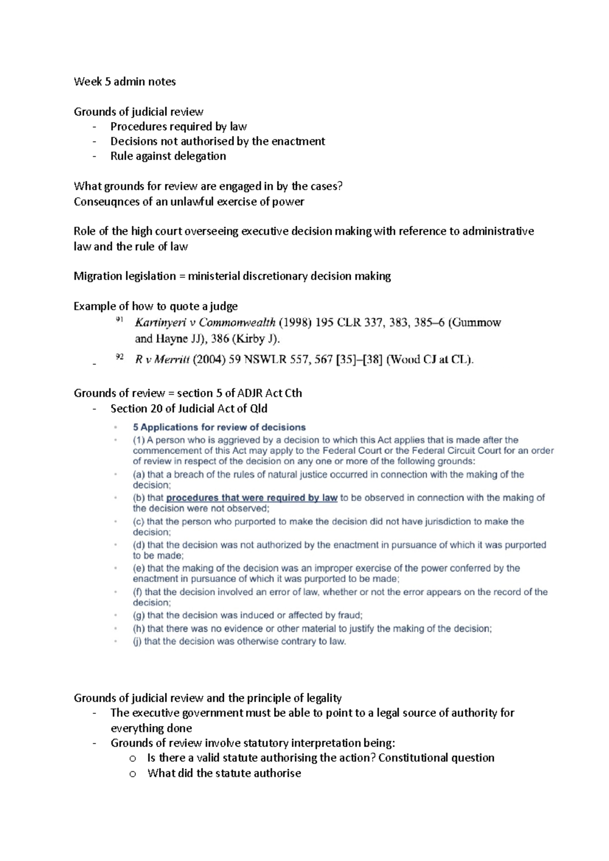 Week 5 admin notes - Week 5 admin notes Grounds of judicial review ...